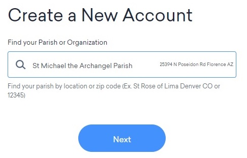 Select "Sign up as a parishioner":